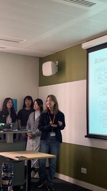 作为四人小组的一员,我们选择了“心理学效应在骑行推广中的应用”这一主题,以“骑行宣传”为载体设计干预项目。汇报中,我们通过生动的PPT展示伦敦骑行文化的现状,还有中国清华大学代表性的紫色共享单车的优秀实践,结合社会认同理论解释“从众心理”等心理学效应对行为改变的推动作用。例如,在城市绿道设置“骑行计数牌”,实时显示当日骑行人数,利用群体压力激发个体参与。我们很荣幸地收获了老师们对这一设计的高度评价,称其“兼具学术深度与实践价值”。
