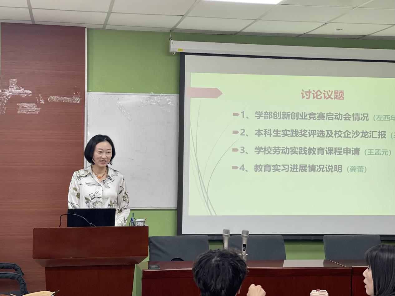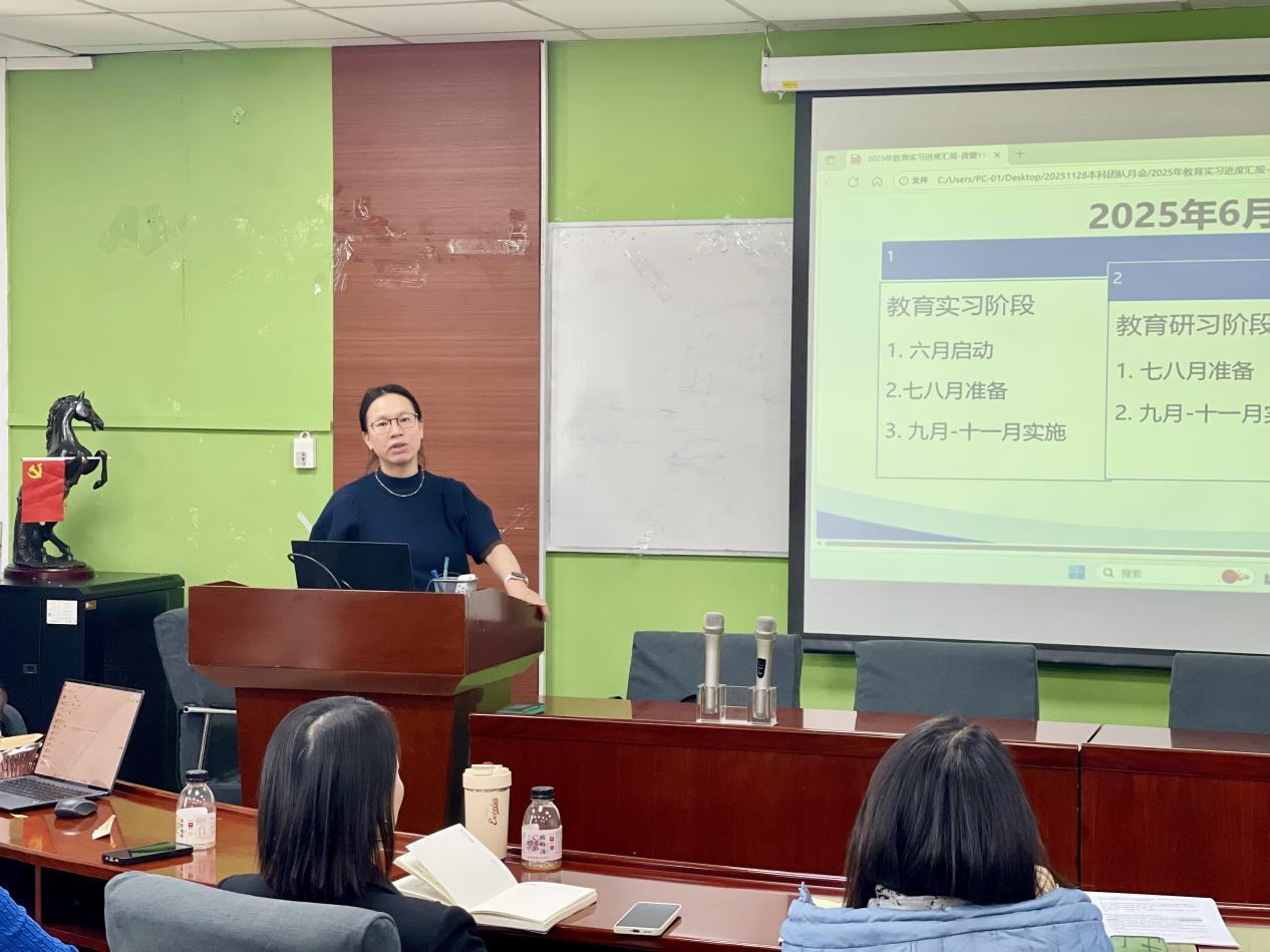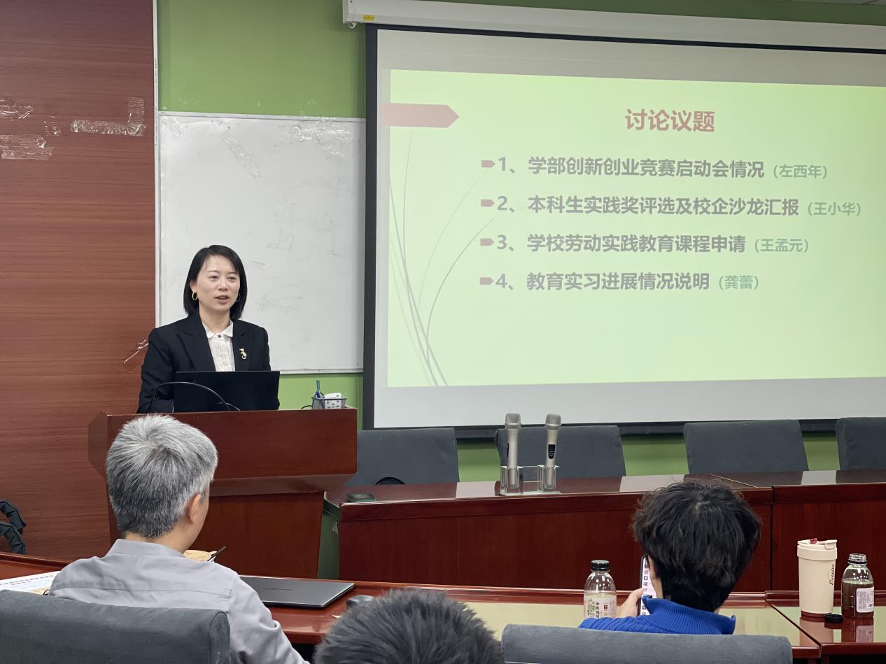 王小华老师就本科生实践奖评选、校企沙龙举办情况进行全面汇报,强化活动成果转化,推动实践育人常态化、长效化。王孟元老师针对学校劳动实践教育课程申请事宜作专题说明。最后,龚蕾老师从教育实习、教育研习及教育实习总结三个维度,全面介绍教育实习相关工作进展。 本次会议通过系统梳理各项工作进展、明确核心任务与实施路径,进一步凝聚了育人共识,为持续完善学部本科人才培养体系、提升人才培养质量奠定了坚实基础。