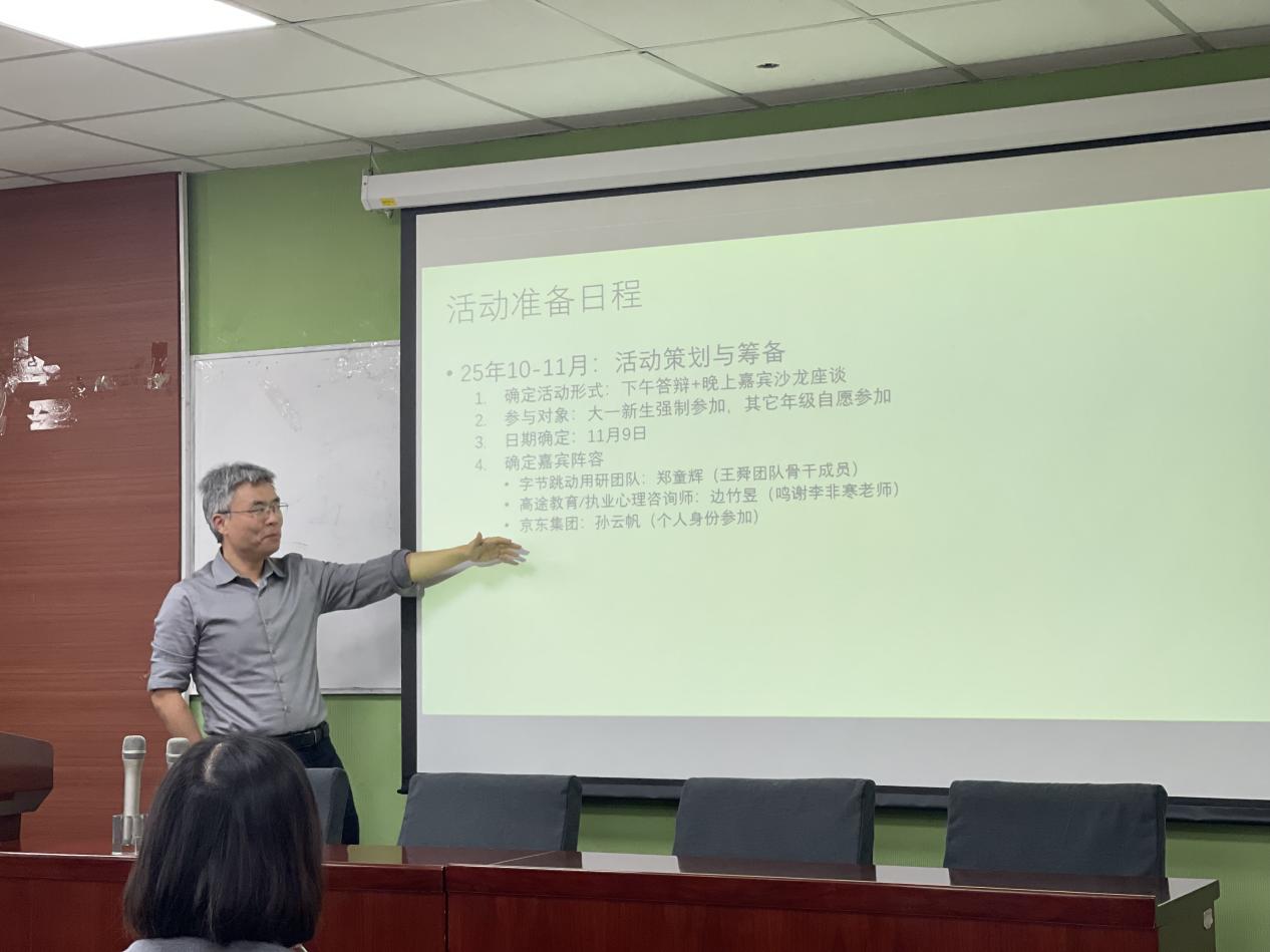 会议围绕心理学部2025-2026年度本科生创新创业竞赛、实践奖评选与校企沙龙、北京师范大学劳动实践教育课程申请、教育实习进展四大核心议题展开深入研讨,明确后续工作推进方向。 彭华茂教授首先通报学部创新创业竞赛启动会相关情况,强调竞赛以“以赛促学、以赛促练”为目标,旨在激发本科生的创新思维与实践应用能力,鼓励团队成员凝聚合力,做好赛事指导、组织协调等后续工作,确保竞赛顺利开展并取得实效。