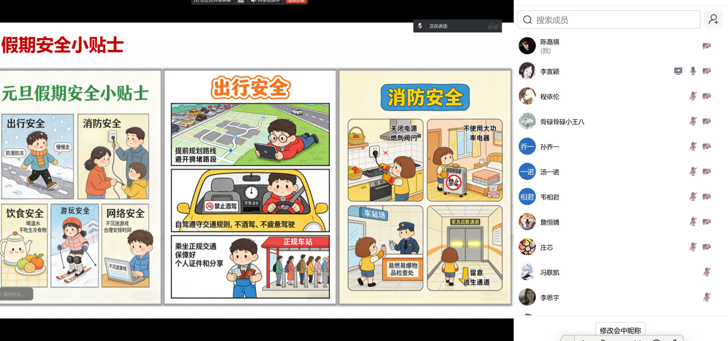 内容重点围绕假期安全展开,详细讲解了出行安全、交通安全、消防安全等方面的注意事项。