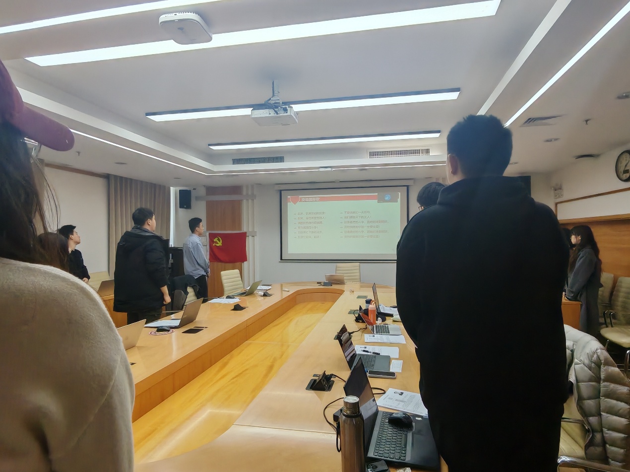 2026年3月22日15时20分,心理学部2024级学术硕士第二党支部于后主楼1316厚粲厅,顺利开展本月主题党日活动。本次会议由党支部书记程先楷同志主持。支部14位正式党员、预备党员和多位积极分子到场参会。 全体起立,齐唱《国际歌》。
