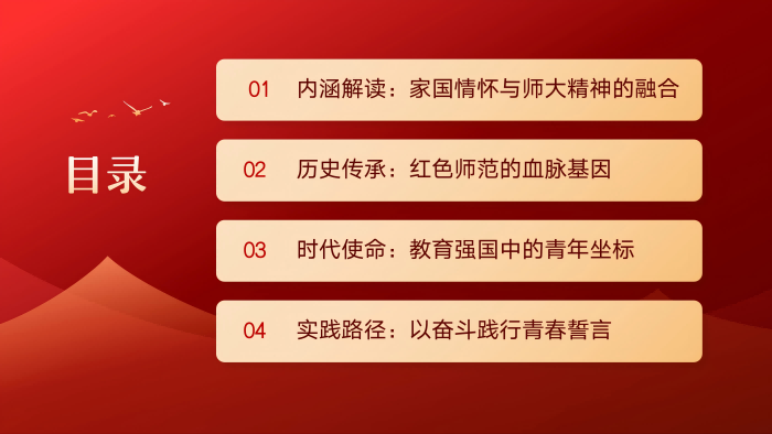 活动围绕“内涵解读、历史传承、时代使命、实践路径”四个篇章层层展开。在“内涵解读”环节,团员们深刻领会了家国情怀的丰富意蕴——不仅是对国家与人民的深情大爱,更是对国家富强、人民幸福的不懈追求。大家一致认为,这一情怀与我校“学为人师,行为世范”的校训精神高度统一,是每一位师大学子应当内化于心、外化于行的价值追求。