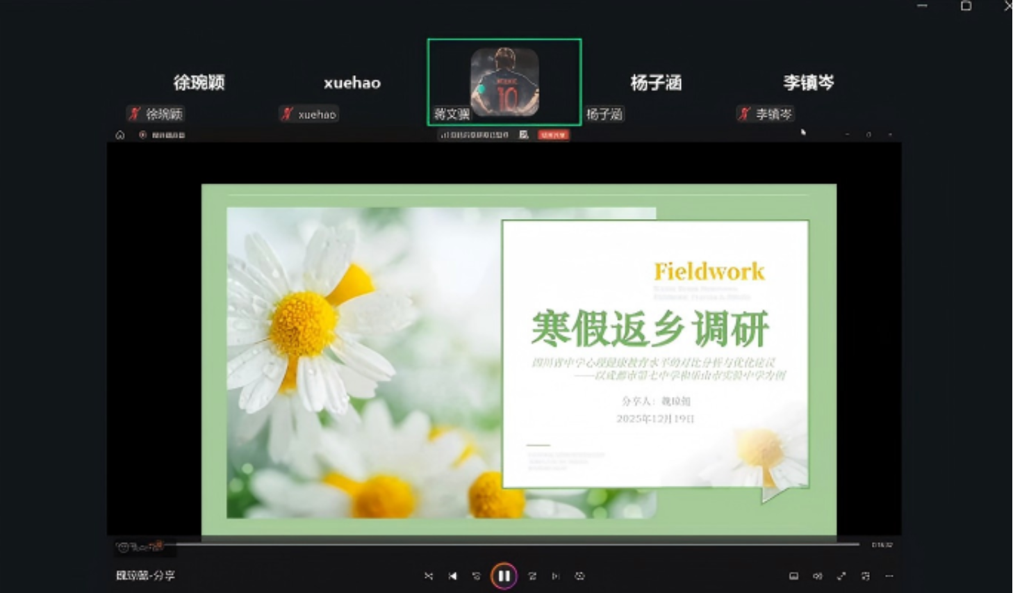 接着由本科生第二党支部的魏琼懿同志和本科生第一党支部的薛润柯同志进行调研经验分享。魏琼懿同志根据自己的实际经验为大家讲述了心理健康项目类寒假返乡调研的项目实施过程、遇到的挑战和收获的成果,重点强调了要明确选题的意义和目的,根据问题确定实施方式。薛润柯同志为大家介绍了大致流程和时间安排、调研方法的选择、调研报告的撰写等,并指出了宣传作为调研的转化成果的重要性,需要前期确定好分工安排和宣传类型及平台,在实践中收集足够的素材等。