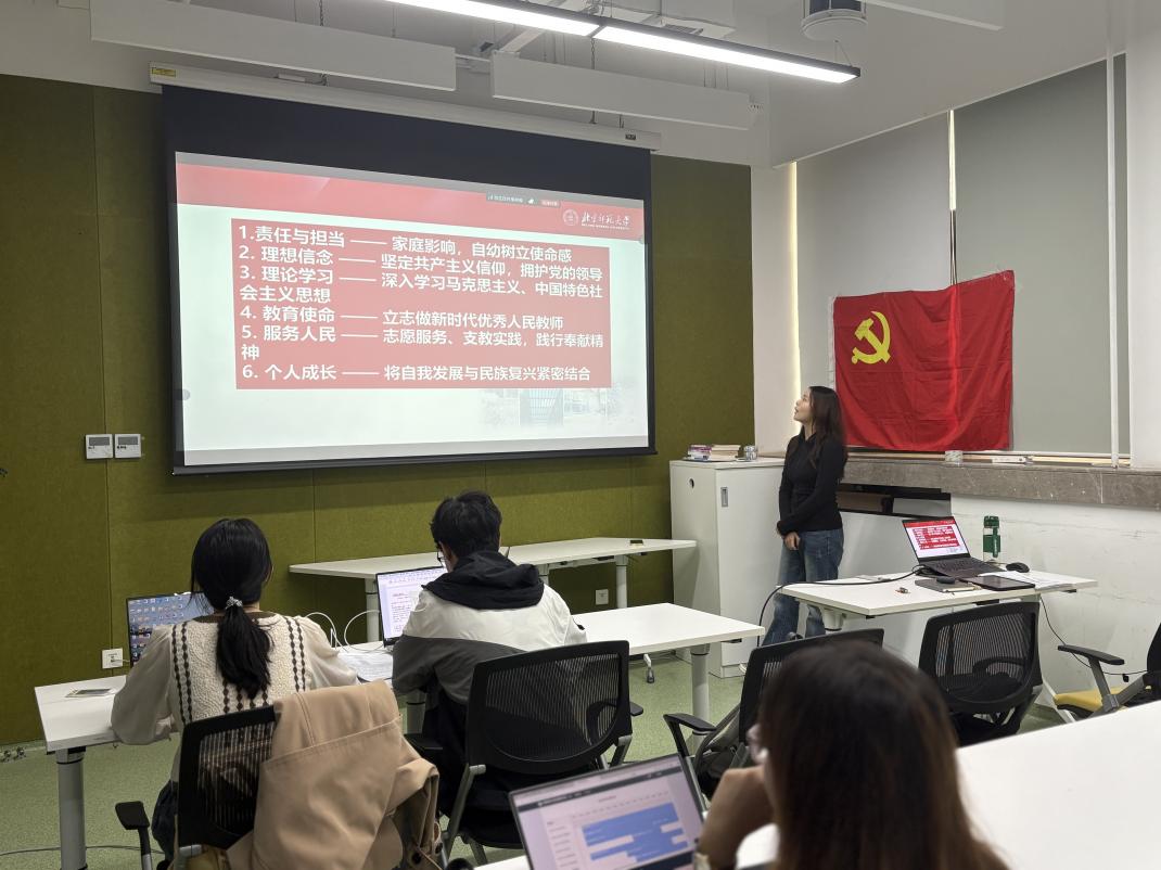 2025年10月4日14时,心理学部本科生第二党支部于金丰和308成功召开了2025-2026学年秋季学期发展对象支部评审会。会议由党支部书记孙梓耀同志主持,共有17名党员及预备党员、16名发展对象参与。 活动伊始,全体起立,齐唱《国际歌》。孙梓耀同志详细说明了本次发展对象支部评审会的流程安排。发展党员是党的组织建设中的重要工作,对于保持队伍先进性和战斗力具有基础性作用,也是凝聚共识、推动党和国家事业发展的实际需要。本次评审聚焦发展对象的全面素质,通过个人陈述与党员评议相结合的方式,严把政治关和能力关,为党组织遴选合格人才。