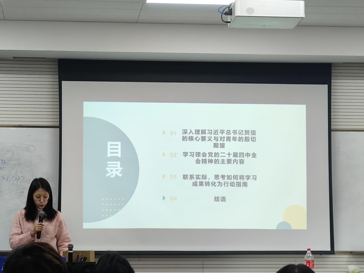 2025年11月18日晚20时,心理学部2024级本科综合班于金丰和609举办“学习习近平总书记重要贺信精神、学习党的二十届四中全会精神”专题学习和“致敬最可爱的人—纪念抗美援朝精神”的主题团日活动。应到42人,实到30人,请假12人。 我们首先学习了习近平总书记重要贺信精神的重要内涵,其核心思想是以中国式现代化全面推进强国建设、民族复兴伟业,青年大有可为。接着我们学习了党的二十届四中全会精神,同学们了解到党的二十届四中全会聚焦推进中国式现代化与党和国家机构改革,号召青年在改革主战场、服务最前沿担当作为。
