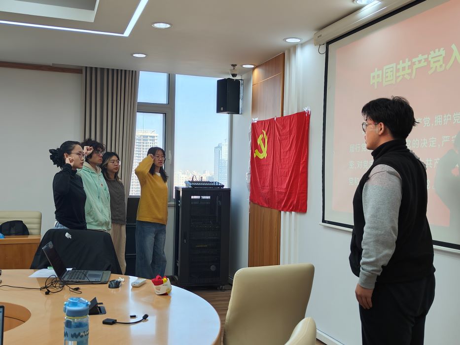 孙梓耀同志评议认为,刘佳仪同志工作踏实细致,有很强的责任心和服务精神。 党支部全体正式党员进行无记名投票,结果为6票赞成,0票反对,0票弃权。经讨论,支部大会通过了刘佳仪同志的转正申请,同意其按期转正为中国共产党党员。 刘佳仪同志感谢组织的信任与培养,承诺将在未来学习工作中以更高标准要求自己,发挥先锋模范作用。 最后,四位同志在党旗下宣誓。
