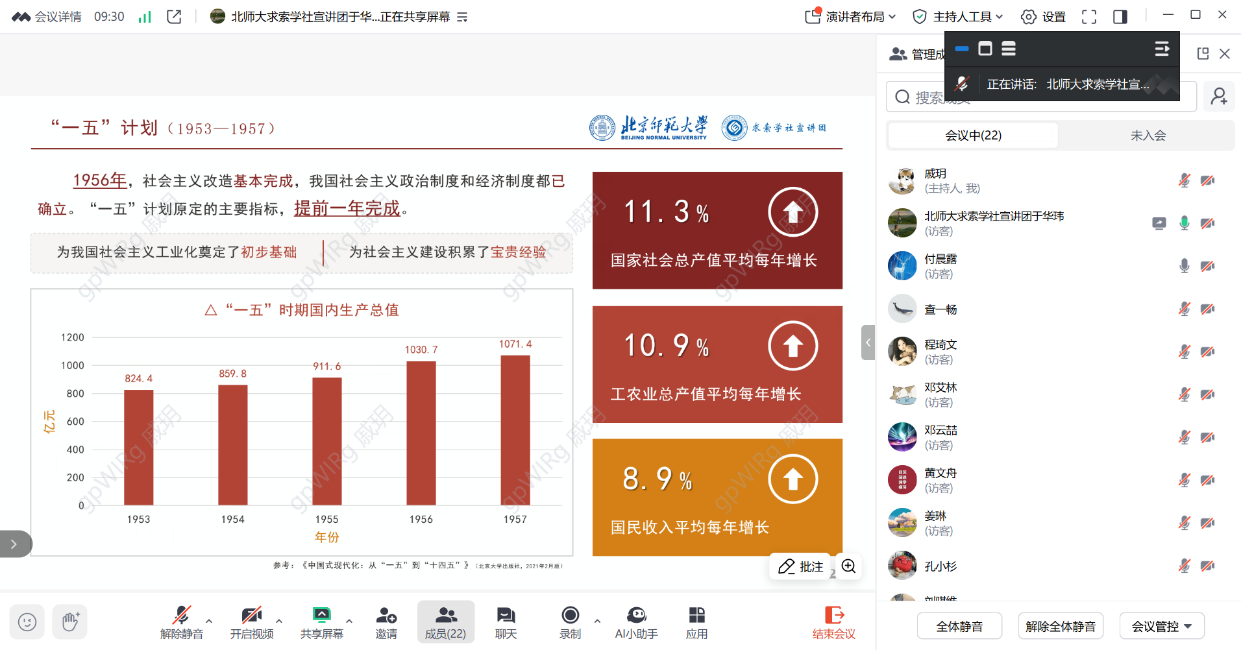 本次专题学习首先邀请了北京师范大学求索学社宣讲团的于华玮同学,带来了主题为《中国人的长期主义——从“一五”计划到“十五五”规划》的精彩宣讲,随后由2024级学术硕士第二团支部团支书付晨露同学带领大家学习了习近平总书记致全国青联十四届全委会和全国学联二十八大的贺信。