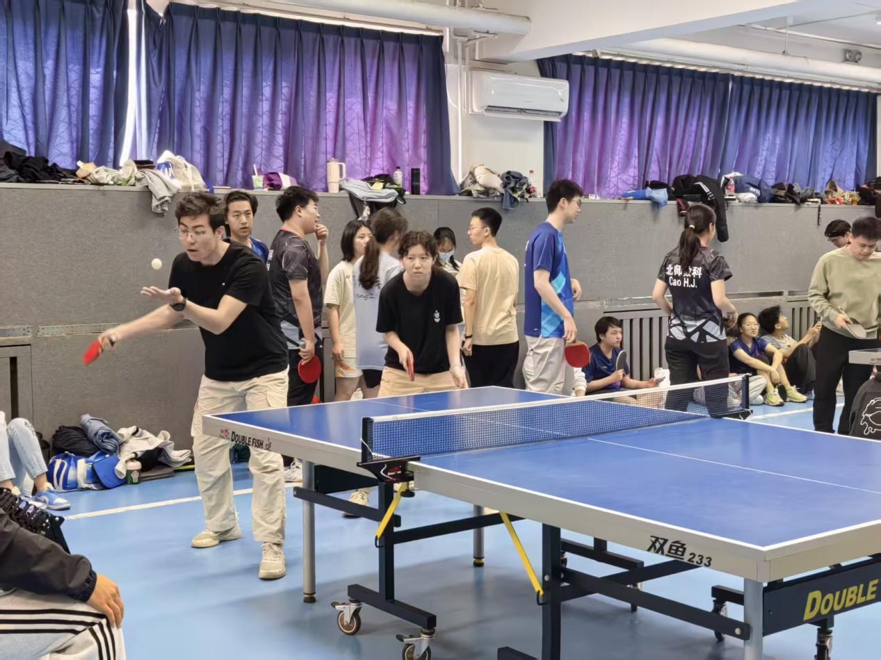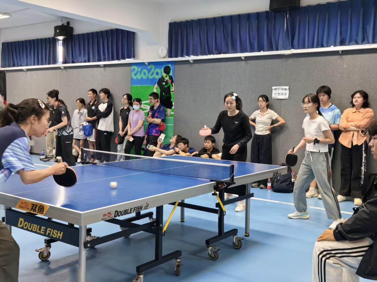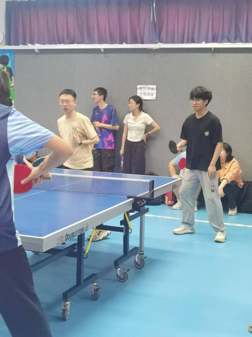 队伍建设与训练升级 在学部和团委的大力支持和悉心指导下,心理学部乒乓球队于2025年春季完成了队伍传承和训练强化,满怀热情地投入到校运会的乒乓球赛中。球队顺利完成了队长交替;日常教练专训正常进行;同时为了积极备战,团队训练频率由每周一次增加至两次,展现了全面提升的决心。 传承友谊,心环共建:与环境学院联队合训 春节学期持续深化与环境学院的合作与互助,我们与环境学院建立的长期协作已超越了单纯的技战术交流,升华为一份深厚的友谊,赛场上,我们是相互学习的伙伴,赛场下,我们是彼此支持的朋友。 校运会赛事回顾:成长比胜利更珍贵 赛前准备,砥砺前行 赛前,除了平时的两队间合训,教练专训外两院还请出了研究生博士生学长为本科队员们进行魔鬼训练,通过对打不同风格的对手,队员们在训练时积极积累实战经验,赛后还有学长的专项训练,队员们从发球、衔接到相持都有了长足进步 首战外文,鏖战五局,虽败犹荣 首轮混双对决,我方出战龙柄屹和王一心,鏖战5局,最终惜败。 接下来是男双对决,我方出战队员为杨士奇、朱帅,在激烈对抗之下成功拿下小轮胜利,大比分来到1:1平。