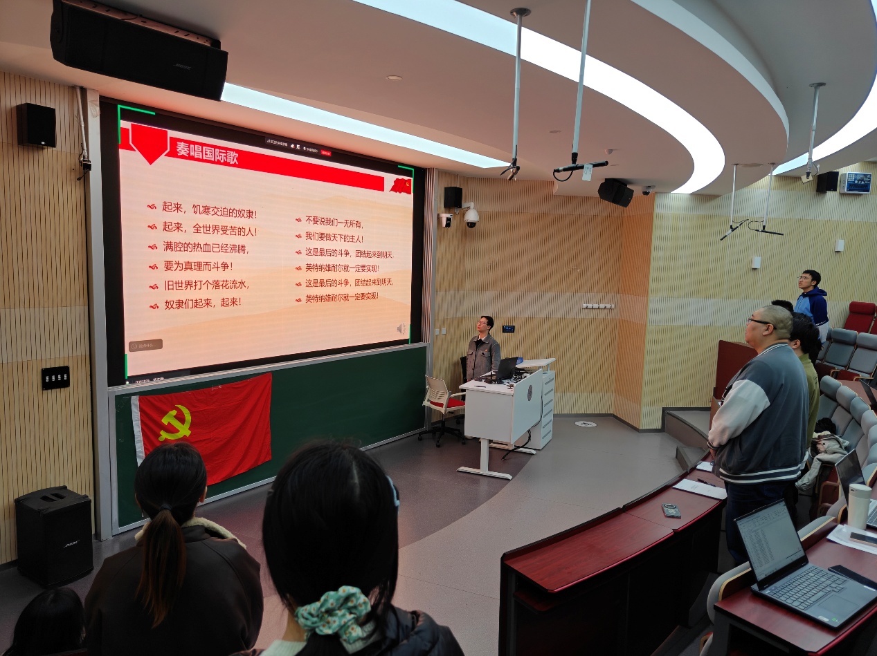 为深入学习贯彻全国两会精神,树立和践行正确政绩观,并开展预备党员发展经验交流,心理学部本科生第二党支部于2026年3月23日晚在电阶梯教室开展主题党日活动。本次活动通过理论学习、分组研讨与榜样分享相结合的方式,引导党员和入党积极分子在深化政治认同中坚定理想信念,在明晰发展路径中增强责任担当。 活动在庄严的《国际歌》中拉开序幕。全体党员肃立齐唱,进一步强化组织观念和党员身份意识。