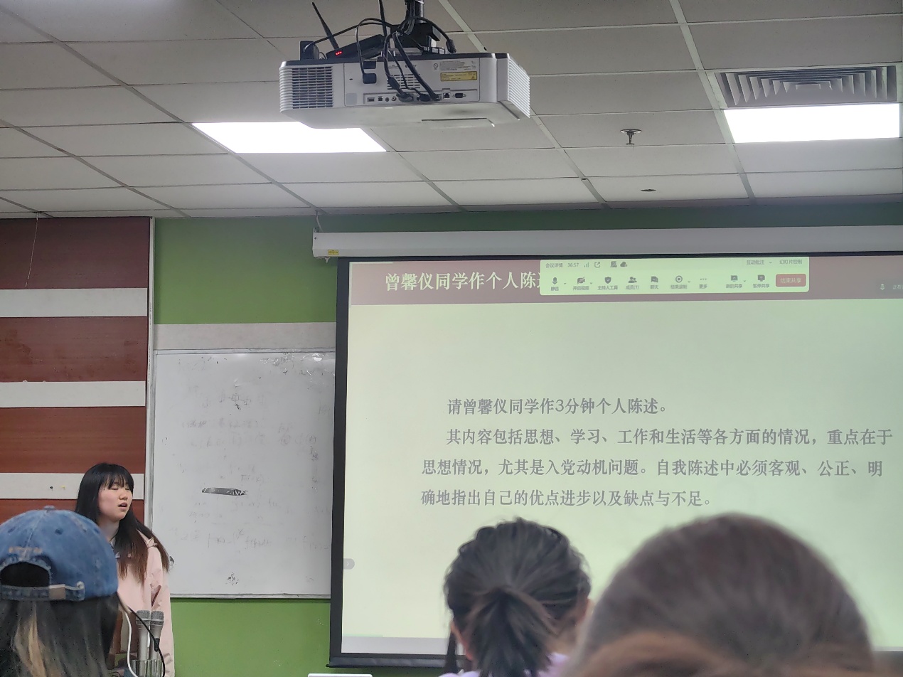 随后,推优人选曾馨仪上台发言。她分享了自己的成长经历和心路历程,深知自己的责任和使命,展现出了卓越的个人风采和积极向上的精神风貌,激发了在场团员们的奋进力量。同时,她也表示将继续保持谦逊谨慎、勤奋进取的精神,不断提升自己的综合素质和能力水平。