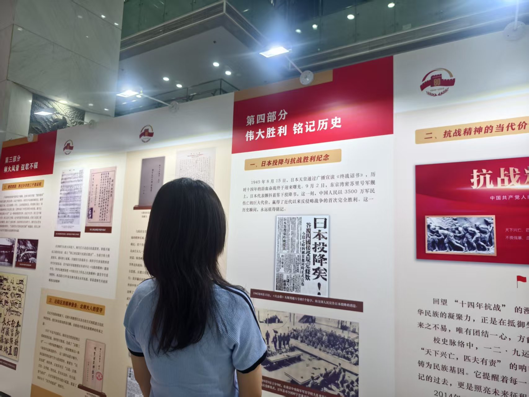 展厅内张贴着的一幅幅历史图片,宛如一部部无声的史书,静静诉说着那段波澜壮阔又满含血泪的抗战历史。泛黄的老照片里,战士们坚毅的神情、百姓们无奈的泪眼,每一处细节都触动着同学们的心弦,将大家瞬间拉回到那个山河破碎、民族危亡的年代。