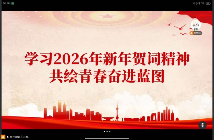 2026年1月23日19点,北师大心理学部2025级本科心理+AI班团支部于腾讯会议线上举办了“学习2026年新年贺词精神,共绘青春奋进蓝图”主题团日活动。本次活动由团支书金宇琨主持,应到团员24人,实到团员19人,5名团员请假。