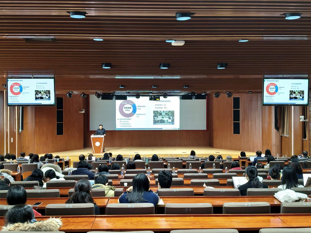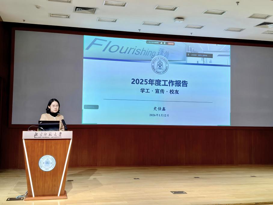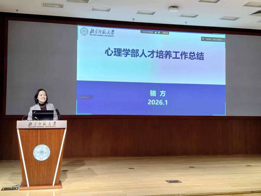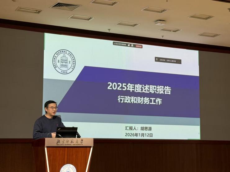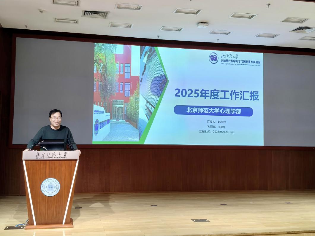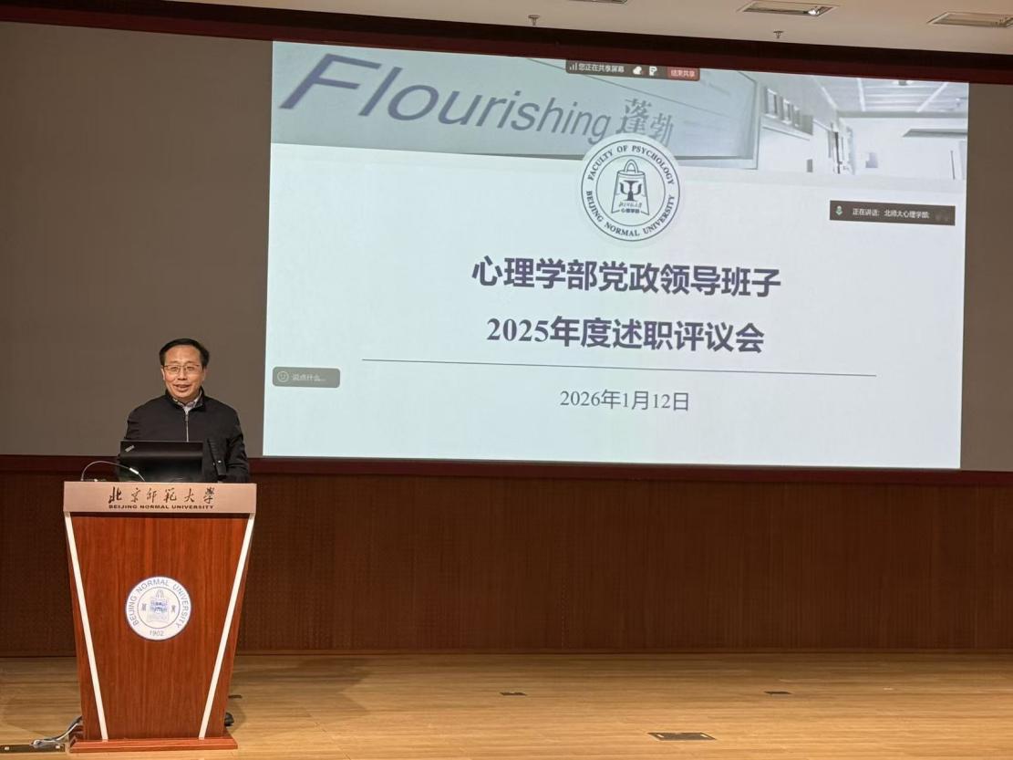 2026年1月12日下午,北京师范大学心理学部召开2025年度党政领导班子述职大会。党委书记乔志宏,部长罗良,副部长骆方、韩在柱、王君、胡思源、韩卓,党委副书记闫琰、史佳鑫,部长助理孙舒平出席会议,先后进行了述职。教师代表在京师学堂京师厅出席会议,珠海校区教师通过腾讯会议参会。会议由心理学部党委书记乔志宏主持。