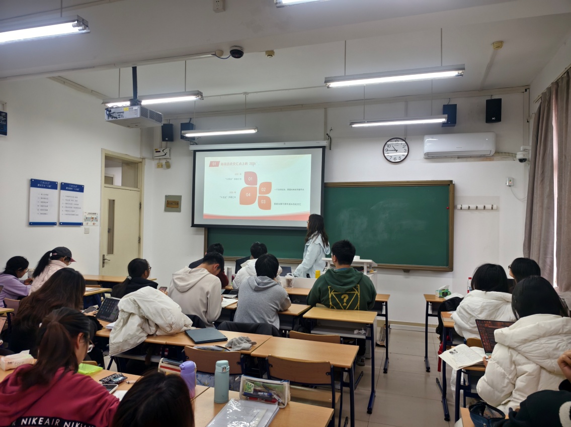 2026年1月7日上午10时30分,2024级励耘班团支部以“学习2026年新年贺词精神,共绘青春奋进蓝图”为主题,在教二111圆满开展了主题团日活动暨团课学习,此次团课由王子伊同学主讲。 首先,2024级全体同学齐唱团歌。 接着,主讲人王子伊带领大家回顾了2025年这一特殊年份——作为“十四五”规划的收官之年,它不仅是对过去五年发展成就的总结,更是擘画未来蓝图的关键节点。2026年,作为“十五五”规划的开局之年,承载着新的希望与挑战,国家发展与青年成长的交汇点在此凸显。