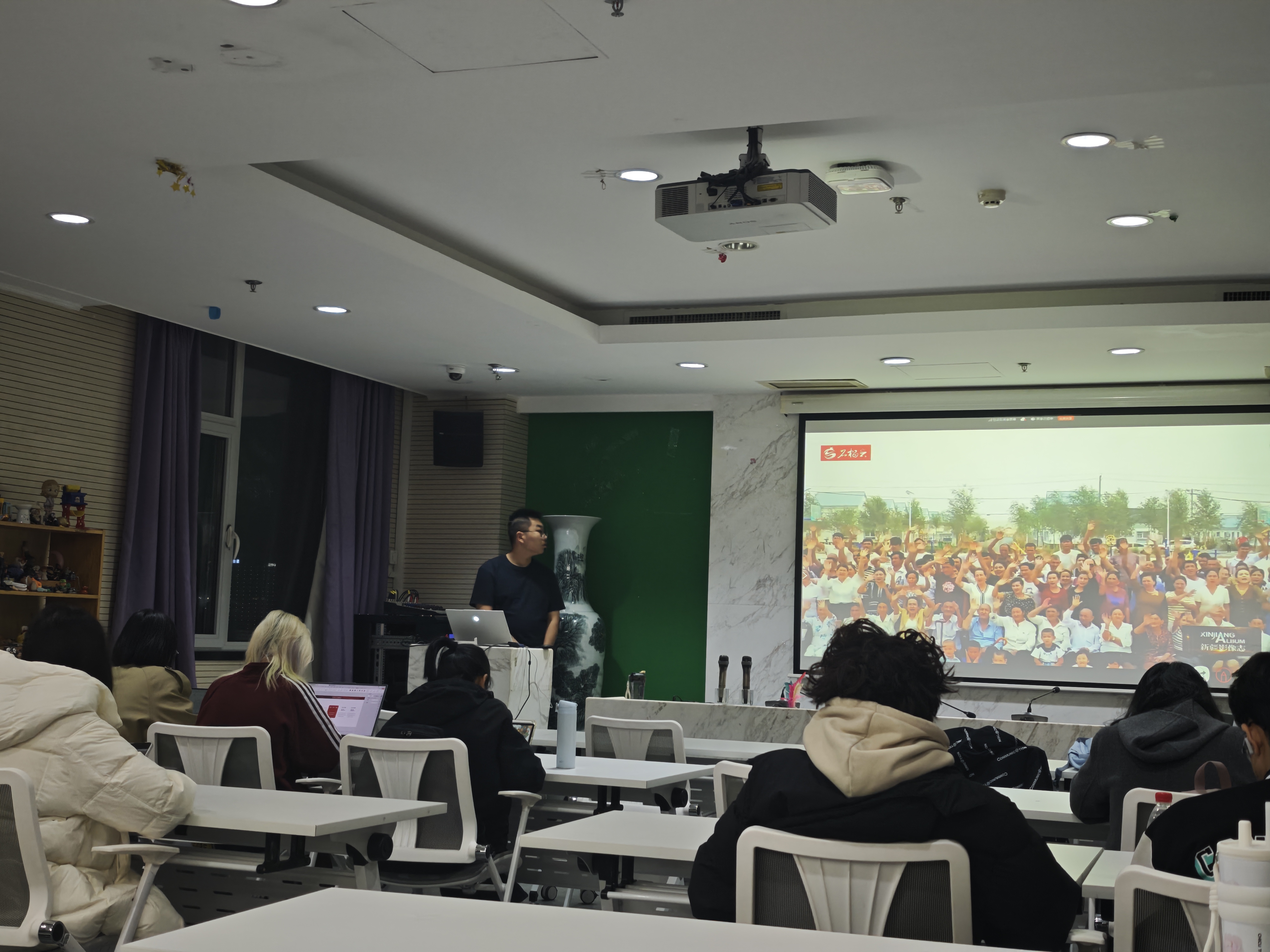 今年是西藏自治区成立60周年、新疆维吾尔自治区成立70周年,主题团日通过放映视频的方式,带领同志们了解在中国共产党的领导下,这些民族区域取得的跨越发展。