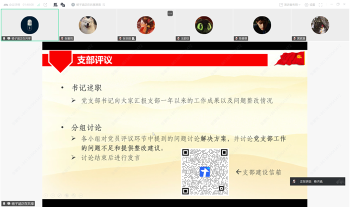 2026年1月17日20时30分,心理学部本科生第一党支部通过腾讯会议顺利召开了2025年度民主评议会暨组织生活会。会议由杨子涵同志主持,共28名党员及预备党员参与评议,16名积极分子进行学习和讨论。会议主要分为理论学习、党员评议和支部评议三个部分。 会议开始,全体起立,奏唱《国际歌》。