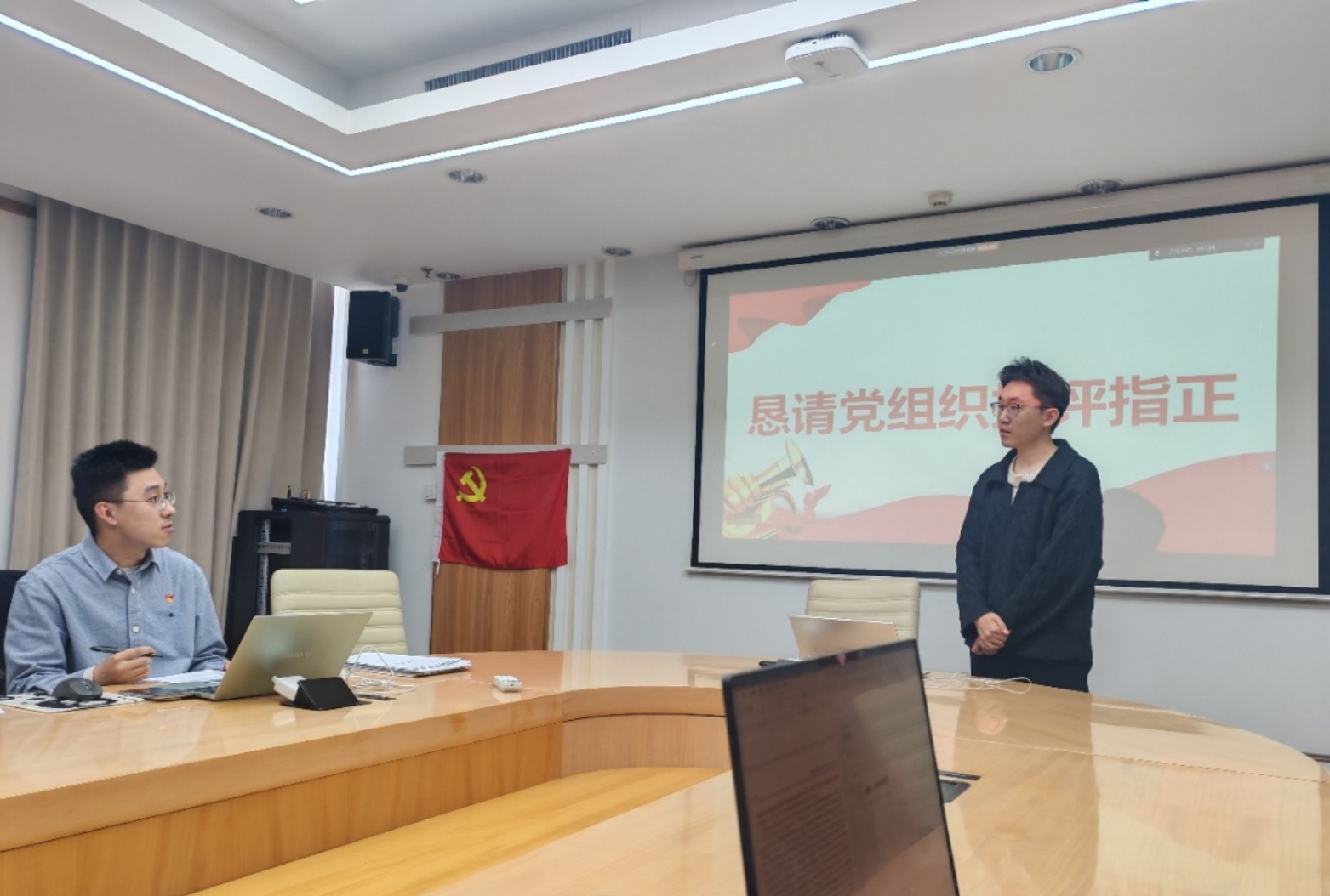 随后,与会党员们对四位同志的评审表填写和答辩幻灯片制作等方面提出了有针对性的建议,以期各位积极分子能在后续学部评审会上更好发挥。支部前几次顺利发展的同志们也向大家介绍了自己在学部汇报答辩与理论知识考试等方面的准备经验。其中,李思娴和张琦同志提示要留心近期时政热点,尽快开展理论知识的复习。安奕浓、陈慧敏等同志也结合自己的经验做了交流。