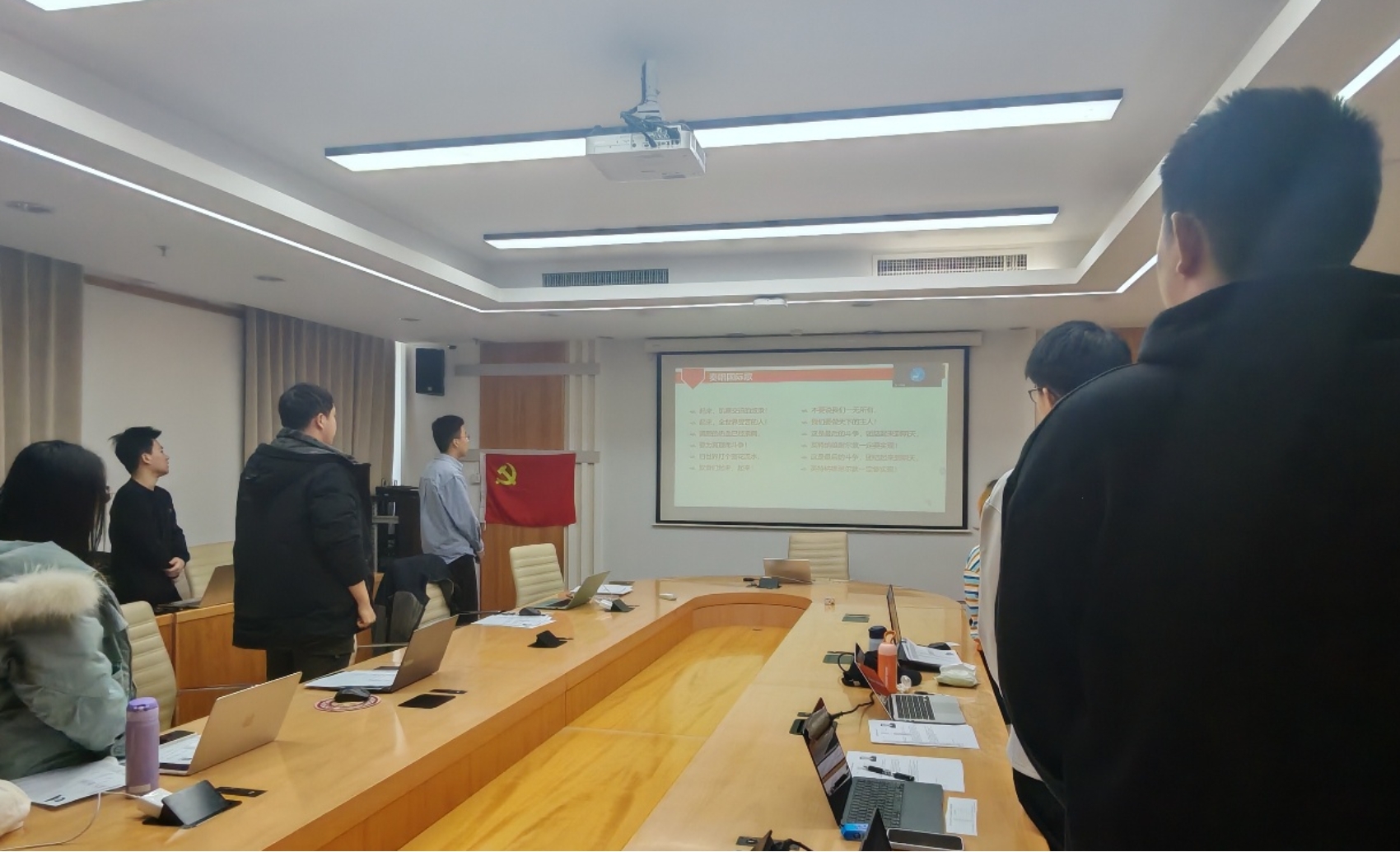 首先,全体起立,齐唱《国际歌》。