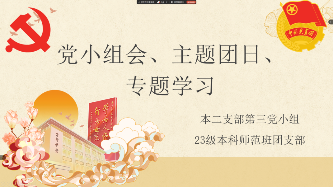 第三党小组:联学共建提升,凝聚青春力量 2025年11月22日,第三党小组与2023级本科师范班团支部联合开展主题团日暨专题学习活动,共30位同志参与。活动集中学习了党的二十届四中全会精神以及习近平总书记致全国青联十四届全委会、全国学联二十八大的重要贺信精神。通过学习,同志们深刻领会了党中央对青年工作的重要部署和对新时代青年的殷切期望。活动引导青年同志明确方向,激励大家紧密团结在党中央周围,奋力书写挺膺担当的青春篇章。