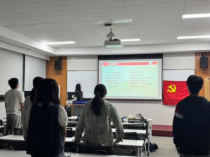 2025年5月18日19时,心理学部本科生第一党支部第一党小组于金丰和609开展本月党小组会。会议由党小组长赵家慧主持,党小组其余同志到场参会。 会议开始,第一党小组成员全体起立,合唱《国际歌》。
