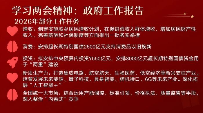 聚焦2026年重点工作部署,团支部重点解读了关乎青年发展的关键举措:从“实施城乡居民增收计划”“支持消费品以旧换新”,到“打造新质生产力”“培育未来产业”;从“完善免费学前教育”“增加高中学位供给”,到“提高医保补助标准”“加强多子女家庭住房支持”……这些政策不仅勾勒出国家发展的宏伟蓝图,也为青年学子的学业规划、职业选择与社会参与提供了清晰指引。同学们尤其对报告中提及的“具身智能”“脑机接口”“6G”等前沿科技方向表现出浓厚兴趣,结合心理学专业背景展开了热烈讨论。