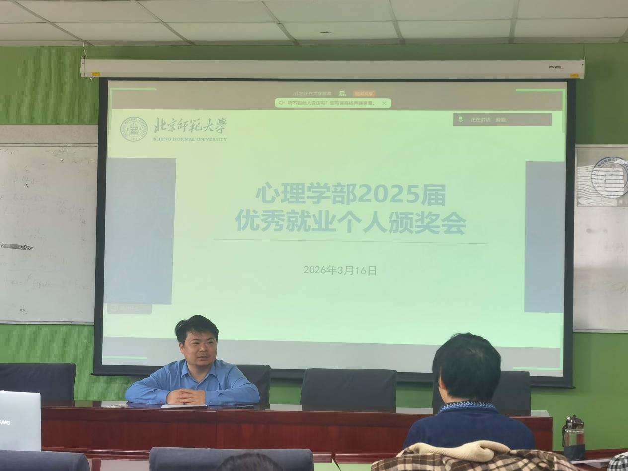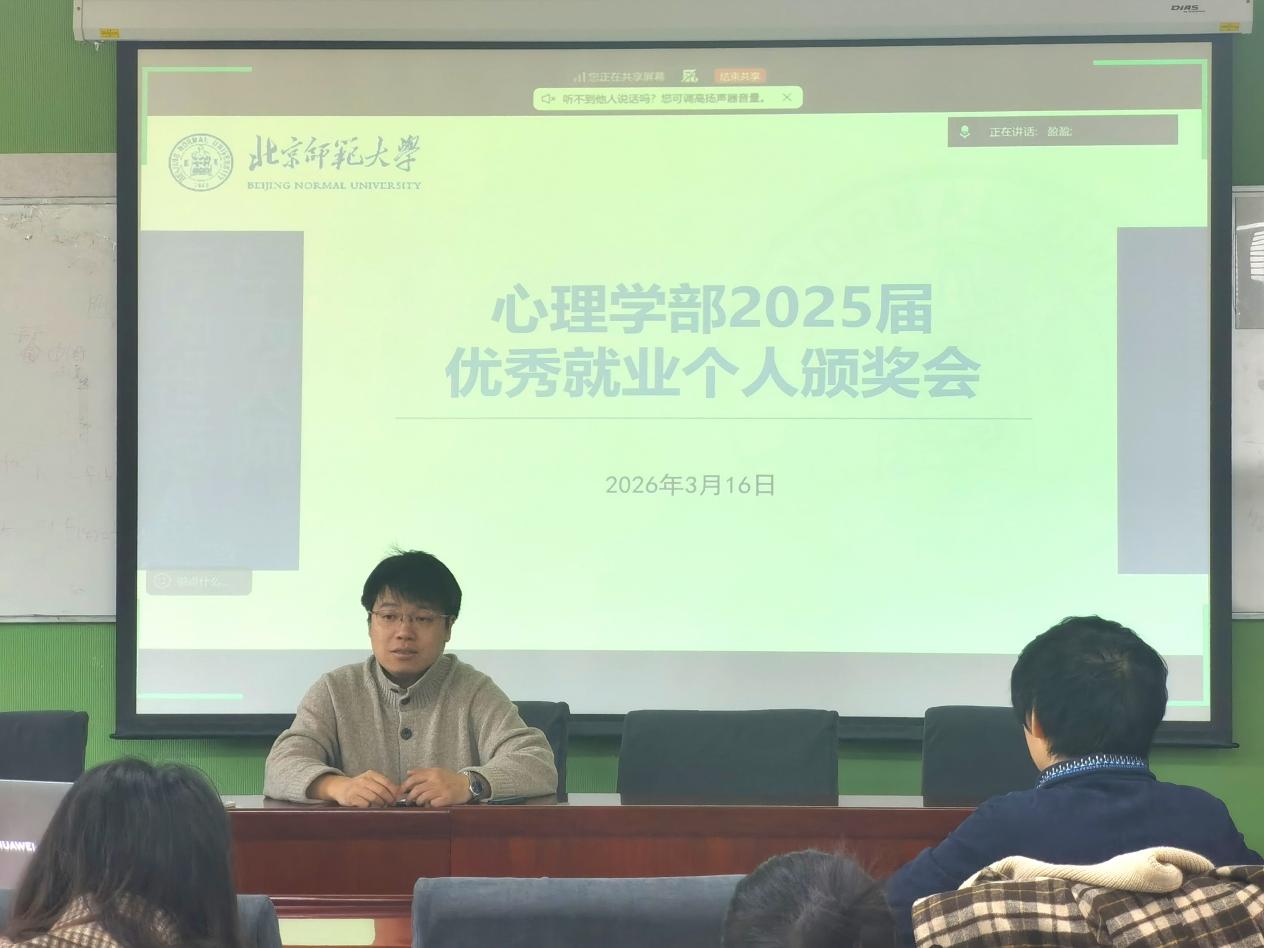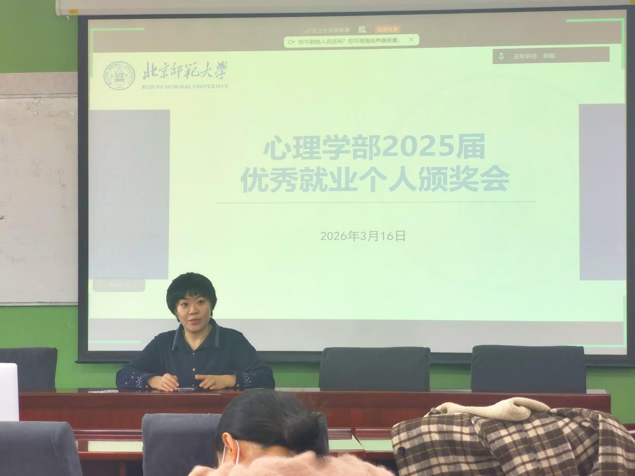 为进一步做好毕业生就业工作,表彰先进、总结经验、部署26届学生就业工作。3月16日,北京师范大学心理学部举办2025届优秀就业个人颁奖会暨就业工作推进会。本次会议聚焦毕业生就业工作,通过表彰优秀就业先进个人、分享就业经验、部署本学年就业工作,凝聚育人合力,助力毕业生高质量充分就业。学部党委副书记、就业辅导员老师、全体毕业班班主任参加了会议。 会议伊始,学部对2025届在就业工作中表现突出的班主任进行表彰,授予“优秀就业个人”荣誉称号。其中三位获奖班主任代表结合工作实际,分享了班主任就业工作的经验与思考。