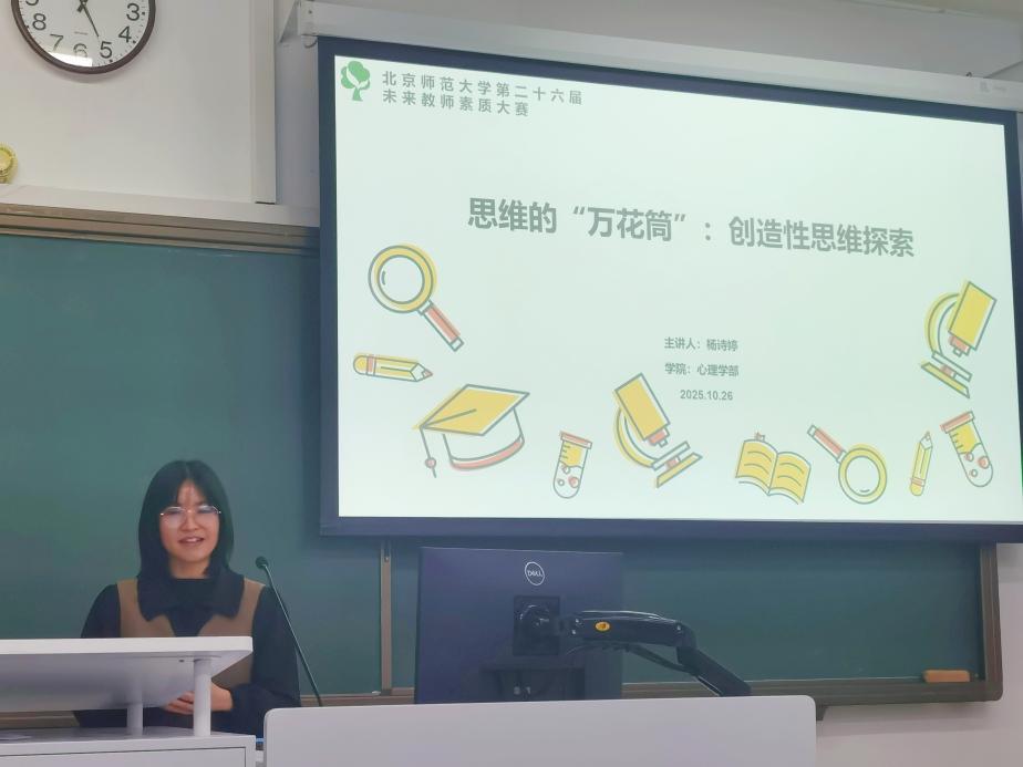 2025年10月26日下午,由心理学部学生会、心理学部研究生会及心理学部本科生人才培养团队师范方向联合举办的北京师范大学第二十六届未来教师素质大赛初赛心理学部分赛在教二203教室成功举行。本次比赛沿用选手八分钟模拟课堂展示的形式,三位评委老师现场打分并作指导点评。