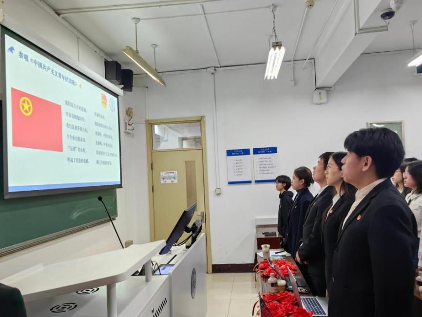 图2 全员齐唱团歌 随后,团委书记张一静老师致辞,系统阐述了近期重点工作,包括建设“青春讲师团”分团、开展“有组织”科创、以及传承与弘扬心理学大师精神等,为心理学部团委的未来发展指明了方向。
