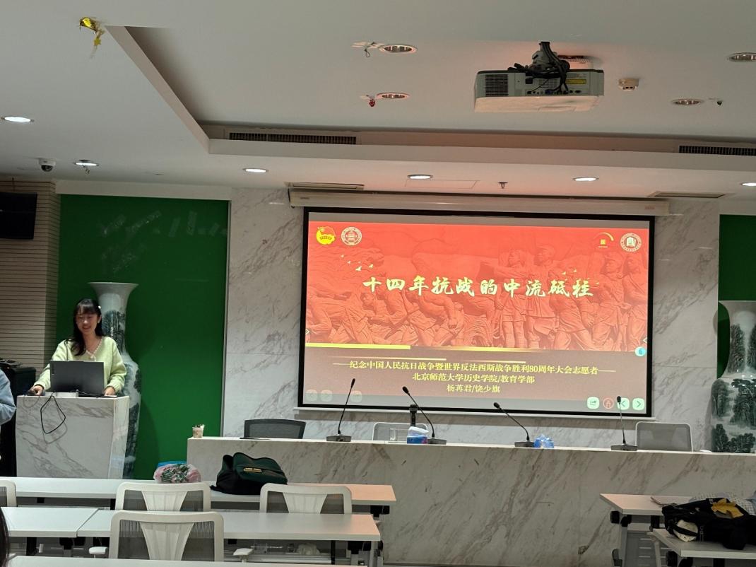 杨苒君同学以抗战历史为脉络,通过国民党三次反共高潮的卑劣行径与中国共产党维护统一战线的坚定立场对比,以及北京师范大学前辈们以笔为枪、血洒疆场的英雄事迹,深刻阐释了“没有共产党就没有新中国”的核心内涵,让同学们真切读懂中国共产党作为抗战中流砥柱的历史必然。