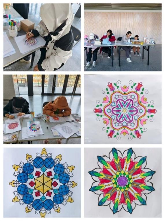图 2 记忆侦探 在“创意心坊”中,同学们创作出多幅美丽的曼陀罗绘画,通过画笔表达内心想法。不少同学表示,在涂画中释放了压力,身心得到了放松。