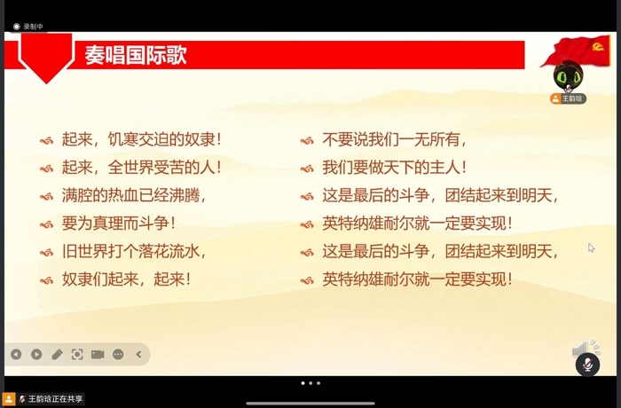 2026年2月25日晚8点,心理学部本科生第一党支部第三党小组顺利开展2月份的党小组会。会议通过“腾讯会议”平台以线上会议的形式进行,由王韵琀同志主持,共15名成员参与。 会议一开始,王韵琀同志带领所有人一起奏唱了国际歌。
