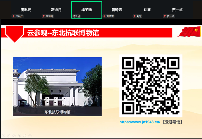 活动第三项,大家通过线上方式“云参观”了东北抗联博物馆。通过数字展厅,大家浏览了一张张历史照片、一件件珍贵文物,重温了东北抗联艰苦卓绝的斗争历程。这种沉浸式的学习体验,让历史变得可触可感,也让大家更加深刻地体会到,无论在何种环境下,忠诚与信仰始终是照亮前路的光。